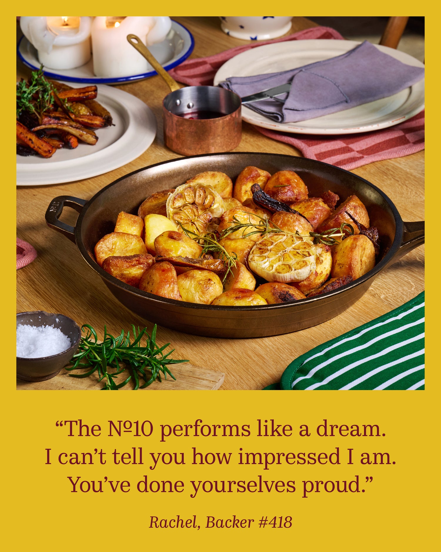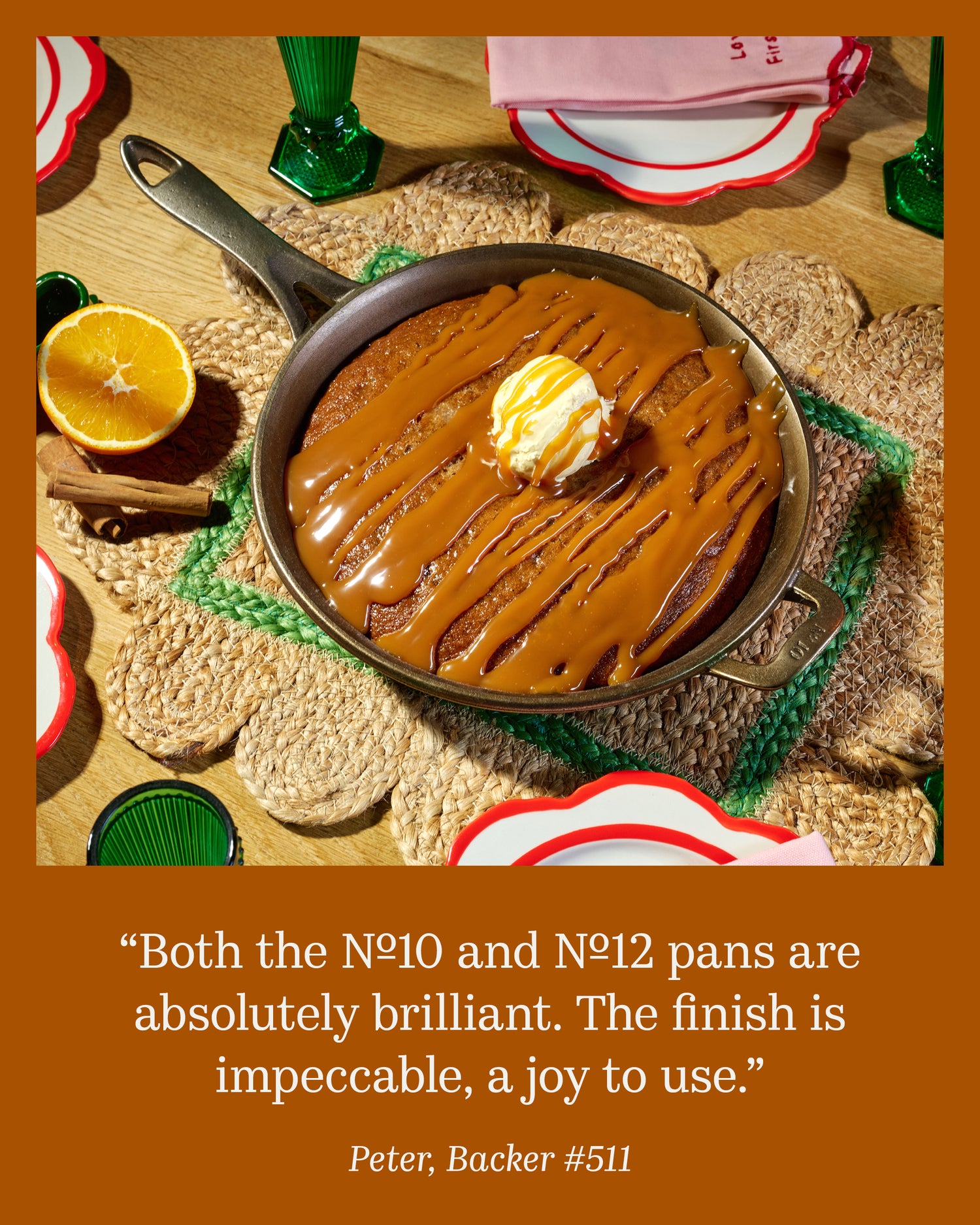 Naturally non-stick and available in 10" and 12" diameter, they are inspired by the best American heirloom cookware, designed in Stockport and sustainably cast in Dorset.